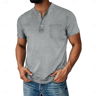 Miesten Henley-paita 100 % puuvillahappopesupaita Lyhythihainen Tavallinen Solid Color Retro / vintage Vapaa-aika Vintage-tyyli Vaatteiden värjäys Haalistunut Henley Kausaliteetti Kesä Kevät Syksy