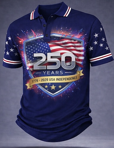 4. heinäkuuta 2026 250. Miesten Yhdysvaltain Yhdysvaltain lippu Poolopaidat Lyhythihainen Poolopaidat Kauluspaidat Vapaa-aika ulko- Urheilu- ja treenivaatteet Napit Kevät kesä Sininen Rubiini Harmaa