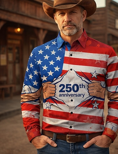 Yhdysvaltojen 250-vuotisjuhla Retro / vintage 1970 luku Pusero Havaijilaispaita Pitkähihainen Hippi Geometrinen Etninen Naamiaispuku Miesten Naamiaiset 4. heinäkuuta Juhla Itsenäisyyspäivä Aikuisten