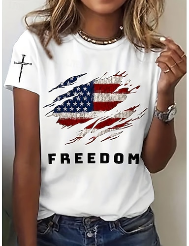 Naisten T-paita Painettu Kuvitettu Kirjain Amerikan lippu Vintage Tyylikäs Klassinen Lyhythihainen Tiukka pyöreä kaula-aukko Tavalliset topit Päivittäin Sininen Musta Valkoinen Rubiini Kesä Kevät