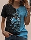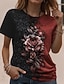 Naisten T-paita Painettu Kukka Kuvitettu Väripalikka Klassinen Vapaa-aika Lyhythihainen Tiukka pyöreä kaula-aukko Pyöreä kaula-aukko Tavalliset topit Päivittäin Urheilu Sininen Rubiini Apila Kes
