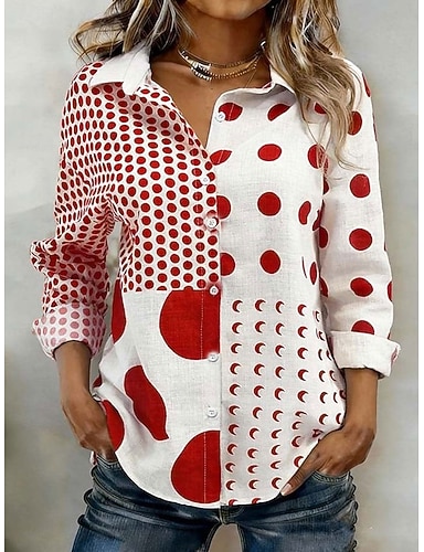 Naisten Paita Napit Painettu Kuvitettu Geometrinen Tyylikäs Vintage Trooppinen Pitkähihainen Paitapuserokaula-aukko Tavalliset topit Päivittäin Työ Musta Rubiini Purppura Apila Harmaa Kesä Kevät Syksy