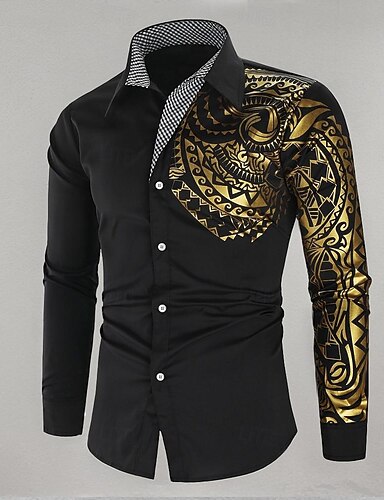 Miesten Pukupaita Kauluspaita Button Up paita Kuvitettu Häät Juhla Musta Valkoinen Viini Rubiini Pitkähihainen Kaulus Kesä Kevät Vaatetus