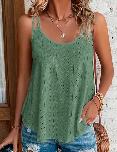 Naisten Pusero Camisole Tank Top Keinopuuvillainen pellava Avoin selkä Tavallinen Moderni Vapaa-aika Hihaton Olkaimellinen Tavalliset topit Päivittäin Bile Musta Valkoinen Apila Kesä
