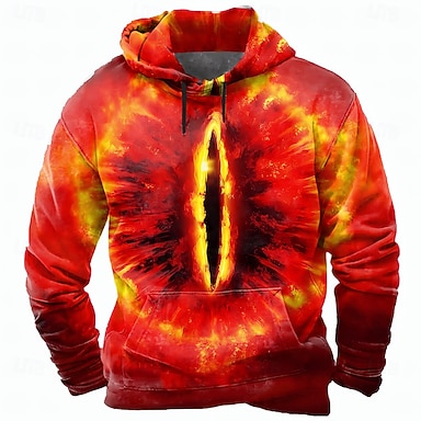 Miesten 3D Silmä Huppari College Punk Liioiteltu Goottityyli Vapaa-aika Pitkähihainen Tiukka pyöreä kaula-aukko Hupullinen Klubi Katuvaatteet Sininen Rubiini Kurenauha Syksy Talvi Suunnittelija S M L