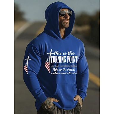 Miesten Risti Amerikan lippu Huppari Muoti Vapaa-aika Vintage retro Pitkähihainen Hupullinen Loma Juhla Katuvaatteet Festivaali Sininen Rubiini Tulostus Syksy Talvi Suunnittelija S M L XL 2XL 3XL