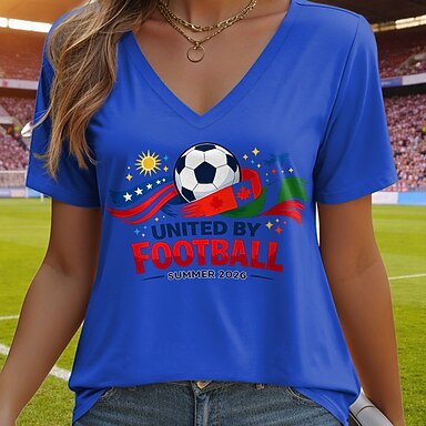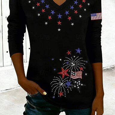 Amerikan itsenäisyyspäivä Naisten T-paita Painettu Kuvitettu Lippu Vintage Tyylikäs Klassinen Lyhythihainen V kaula-aukko Tavalliset topit Päivittäin Sininen Purppura Apila Kesä Kevät