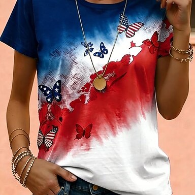 Itsenäisyyspäivä Patriotinen Naisten T-paita Graafinen Lippu Vintage Tyylikäs Rentoa Lyhythihainen Pyöreä Kaula Tavalliset Paita Päivittäin Printti Sininen Valkoinen Punainen Kesä Kevät