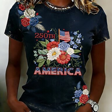 Amerikan itsenäisyyspäivä Naisten T-paita Painettu Kuvitettu Lippu Tyylikäs Klassinen Vapaa-aika Lyhythihainen Tiukka pyöreä kaula-aukko Tavalliset topit Kausaliteetti Päivittäin Valkoinen Kesä Kevät