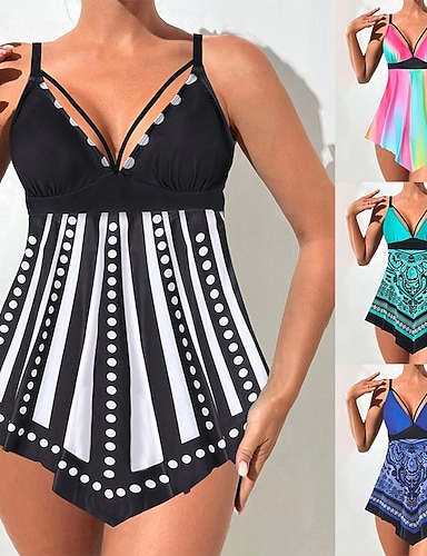 Naisten tankini 2-osainen uimapuku hameella vatsansalpaus korkeavyötärö ohuet selästä avonaiset lomaranta-asut kukallinen värilohko V-kaula-aukoilla ilman hihoja