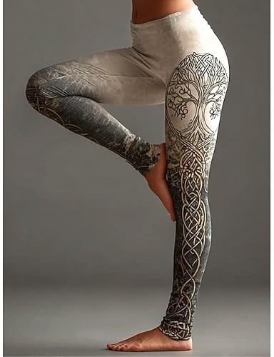 Naisten viikinkityyliset boho-legginssit vintage lomalle etniseen tyyliin täyspitkät korkeavyötäröiset graafiset abstrakti 3D-painatus nopea kuivuminen hengittävyys pehmeät joustavat ulkoiluun