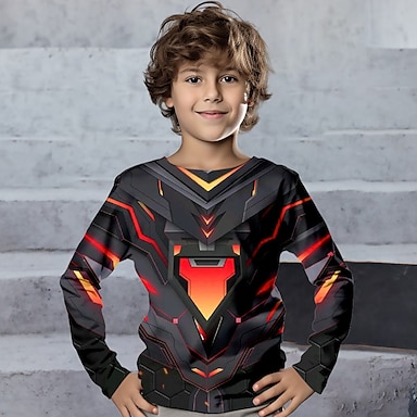 Poikien 3D-graafinen optinen illuusio t-paita pitkähihainen 3D-tulostus kesä kevät syksy urheilu muoti katutyyli polyesteri lapset 4-12 vuotta ulkoilu rento päivittäin normaali istuvuus