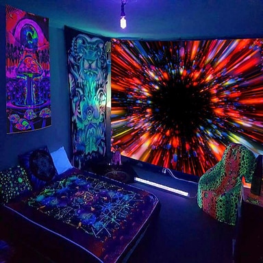 blacklight kuvakudos uv reaktiivinen hohto pimeässä hehku juhlat neon juhla ideoita hehkutikkuja juhlaan roikkuu kuvakudos seinätaide seinämaalaus olohuoneeseen makuuhuoneeseen