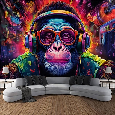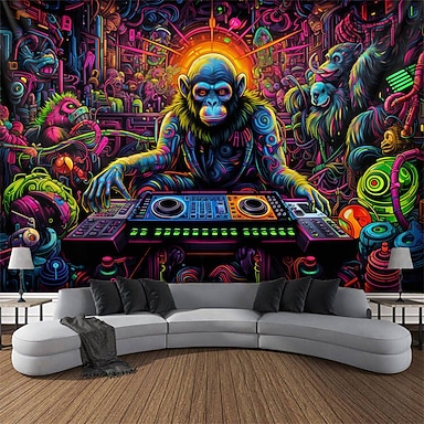 blacklight kuvakudos uv reaktiivinen hehku pimeässä hehku juhlat neon simpanssit psykedeelinen trippy sumuinen roikkuu kuvakudos seinätaide tapetti asumiseen