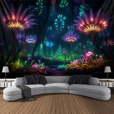 blacklight kuvakudos uv reaktiivinen hehku pimeässä hehku juhlat neon sieni metsä psykedeelinen trippy sumuinen roikkuu kuvakudos seinätaide tapetti asumiseen