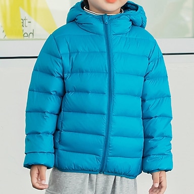 Lapset Poikien Untuvatakki Huppari takki Puffer takki Päällysvaatteet Kuvitettu Pitkähihainen Pidä Lämmin Tuulenpitävä Takki Kausaliteetti Päivittäin Perus Sininen Valkoinen Laivaston sininen Syksy