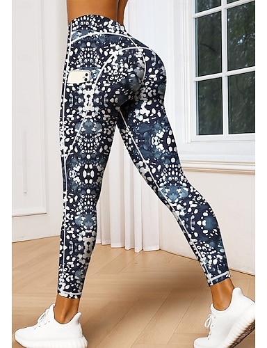 Naisten Joogahousut Peppua kohottava Vatsatuki Korka vyötärö Kuntosaliharjoitus Juoksu Kunto Pyöräily Sukkahousut Leggingsit Paisley-kuvio Sininen Syksy Talvi Urheilu Urheiluvaatteet Erittäin
