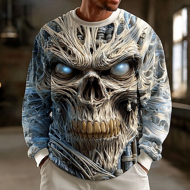Miesten Pääkallot 3D Viikatemies College Punk Juhla Goottityyli Pitkähihainen Tiukka pyöreä kaula-aukko Loma Sininen Taivaan sininen Apila Harmaa Crewneck 3D Kaikki vuodenajat Suunnittelija S M L XL
