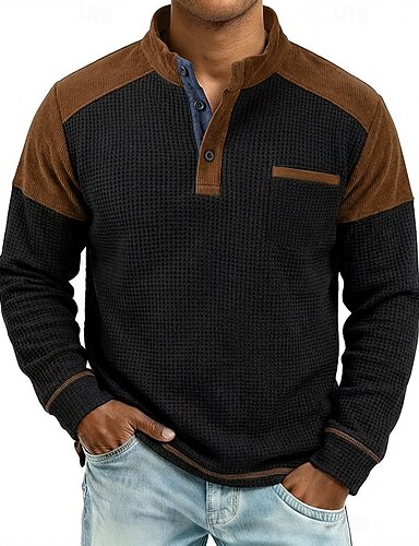 Miesten Vohveli T-paita T-paita Vohveli Henley-paita Pitkähihainen Henley 봄 & Syksy Yhtenäinen väri Tilkkutäkki Perinteinen / Vintage Vapaa-aika Väripaletti Perus Kausaliteetti Koti ulko- Musta