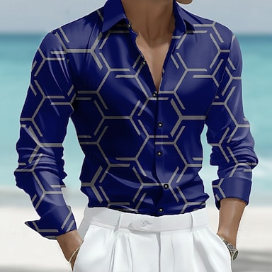 Miesten Geometrinen Aaltokuvio Paita Button Up paita Pitkähihainen Muoti rento ulko- Päivittäin Katuvaatteet Kevät Syksy Sänkyjen avaus 3D-tulostus Pellava kuin paita Valkoinen Sininen Khaki