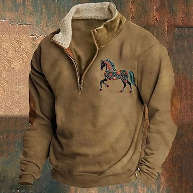 Miesten College Quarter vetoketjullinen collegepaita Musta Laivaston sininen Ruskea Harmaa Puolivetoketju Väripalikka Hevonen Tilkkutäkki Urheilu ja ulkoilu Päivittäin Pyhäpäivä Polyesteri Vintage