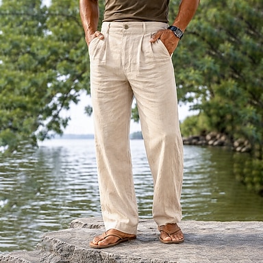 Miesten Pellavahousut Housut Puvunhousut Kesähousut Edessä tasku Laskokset Suora jalka Tavallinen Mukavuus Hengittävä Täyspitkä Muodollinen liiketoiminta Päivittäin Muoti Perus Vihreä+harmaa