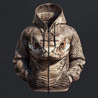Miesten Käärme Vetoketjullinen huppari Huppari College Muoti Tyylikäs 3D Pitkähihainen Hupullinen Katuvaatteet Loma Bile Ruskea Apila Ruskea 2 Ruskea 3 Kurenauha Vetoketju Syksy Talvi Suunnittelija S
