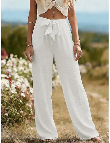 Naisten Keinopuuvillainen pellava Leveä reisi Kiinalainen Kesähousut Loma Katutyyli Perus Täyspitkä Keskikorkea vyötärö Tavallinen Tasku Elastinen vyötärönauha Mukava Hengittävä Joustamaton
