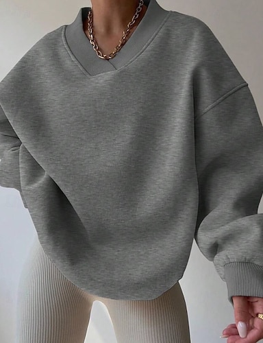 Naisten Paita Pusero Röyhelö Yhtenäinen väri Perus Vapaa-aika Pitkähihainen V kaula-aukko Tavalliset topit Päivittäin Sininen Apila Harmaa Syksy Talvi
