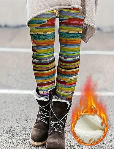 Naisten Leggingsit Mukavat leggingsit Vintage Muoti Katutyyli Täyspitkä Korka vyötäröPantsChristmas Kuvitettu Raidoitettu Tulostus Fleece Pidä lämpimänä Mukava Elastinen ulko- Rento / arki Pinkki
