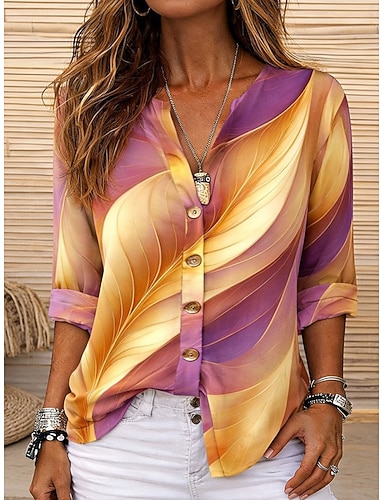 Naisten Paita Tunika Kesän yläosat Napit Ombre Kuvitettu Abstrakti Loma Päivittäin 3/4 hiha V kaula-aukko Pitkät topit Päivittäin Pyhäpäivä Bile Keltainen Purppura Apila Kesä Kevät