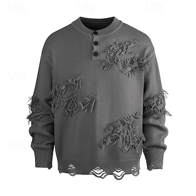 Miesten Neulepusero Neulottu villapaita Joustin Neuloa Tavalliset topit Kudottu Painettu Tiukka pyöreä kaula-aukko Muoti Perus Loma Arki-asut Vaatetus Syksy Talvi Harmaa S M L