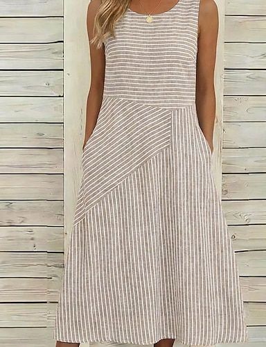 Naisten Midi Mekko Pellavanomainen Kesämekko Siirrosmekko A-linja Mekko Loma Rentoutuminen Boho Ranta Ulkona Irtonainen Fit Graafinen Geometrinen Hihaton Pyöreä Kaula Sininen Punainen Ruskea Vihreä