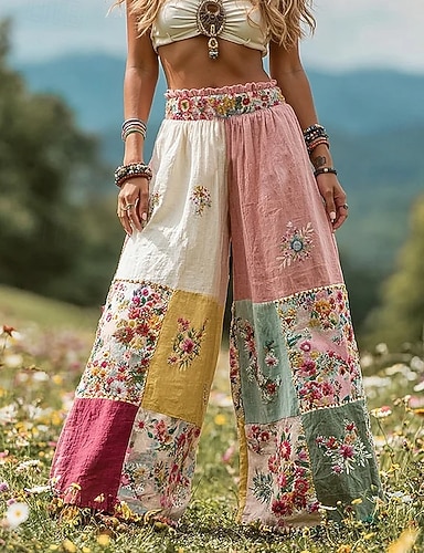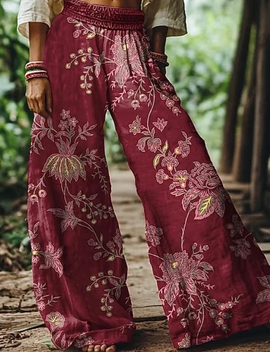 Naisten Boho Laajapohjaiset Chino-housut Baggy Housut Loma Vintage Etninen Tyyli Kokopitkä Korkea Vyötärö Kukka Graafinen Printtaus Lämpimät Pehmeät Hengittävät Mikroelastiset Loma Katu Rentoa