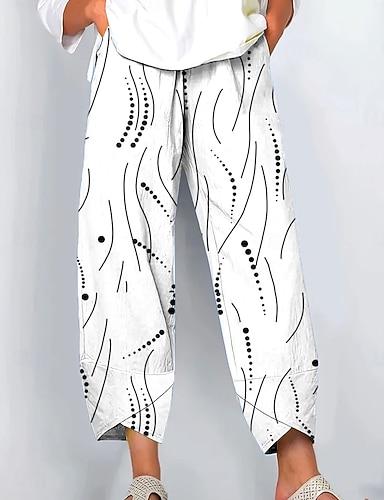 Naisten Housut 3/4-pituiset housut Loma Vintage Vapaa-aika Nilkkapituinen Korka vyötärö Kuvitettu Geometrinen printti Abstrakti Elastinen vyötärönauha Mukava Mukavuus Hengitettävyys Joustamaton