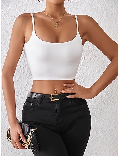 Naisten Pusero Camisole Tank Top Avoin selkä Tavallinen Seksikäs Vapaa-aika Hihaton Olkaimellinen Rajaa topit Päivittäin Pyhäpäivä Bile Musta Valkoinen Rubiini Vaalean ruskea Oranssi Kesä Kevät