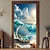 3D-merirantamaisema jättiläismäinen simpukka delfiinit meritähti aurinko aallot trooppinen rannikkotyylinen ovibanneri etuovelle kodin makuuhuoneen huoneen seinäkoristeeksi