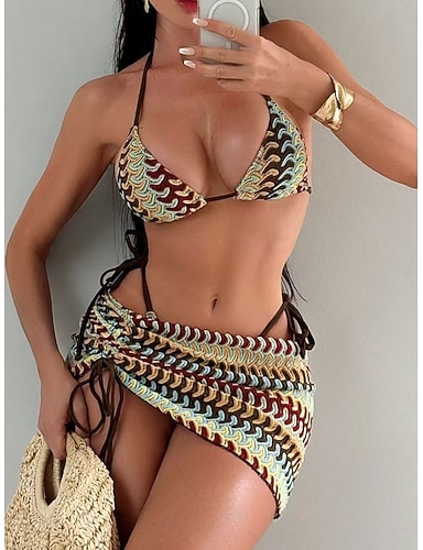Naisten Uima-asut Bikinit 2 kpl Stringit Uimapuku Ohut Avoin selkä Loma Ranta-asut Geometrinen Riipuskaula Hihaton Uimapuvut
