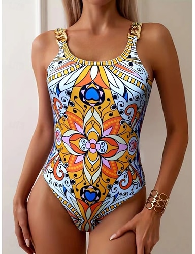 Naisten Kertakäyttöinen Uimapuku Hameen kanssa Boho Monokini Korkea Leikkaus Vatsan Hallinta Korkea Vyötärö Laihduttava Selkätyhjennys Loma Vintage Graafinen Paisley U-muotoinen Hihaton Uimapuku