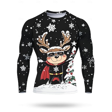 joulu Miesten Sukupuolineutraali Juoksupaita Urheilullinen paita Kuntosali paita Fitness paita Harjoituspaita Pitkähihainen Tee paita Piirretty UPF 50 UV-vastustuskykyinen Pehmeä Hikeä siirtävä