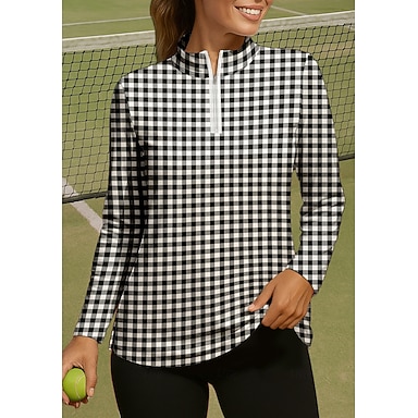 Naisten Pleedi Ruudullinen Pusero Urheilupaita Poolopaita Tennispaita Pitkähihainen Vetoketju Kukka-aihe UPF50+ UV-vastustuskykyinen Erittäin elastinen Kosteuden siirtävä Hengittävä Lentopallo Tennis