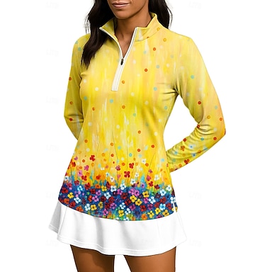 Naisten Kukat Yläosat Pusero Urheilupaita Poolopaita Pitkähihainen Vetoketju Kukka-aihe UPF50+ UV-vastustuskykyinen Erittäin elastinen Kosteuden siirtävä Hengittävä Lentopallo Tennis Golf