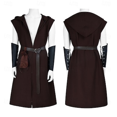 Keskiaika Renessanssi Viitta Hupullinen Viikinki Ranger Naamiaispuku Sukupuolineutraali Viikinki Halloween Karnevaali Suoritus LARP Ren Faire Aikuisten Shaali