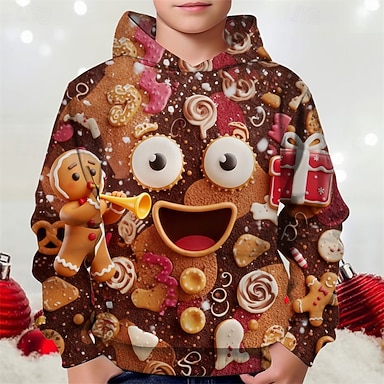 joulu Poikien 3D Kuvitettu Piparkakut miehet Huppari Pitkähihainen Kevät Syksy Muoti Katutyyli Lapset 4-12 vuotta Hupullinen ulko- Kausaliteetti Päivittäin Normaali