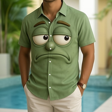 Miesten 3D Print 3D sarjakuva Hymynaama Paita Button Up paita Lyhythihainen Hauska ulko- Pyhäpäivä Kesä Kevät Sänkyjen avaus 3D-tulostus kauluspaidat Keltainen Tumman vihreä Oranssi Apila