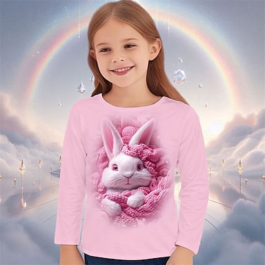 Tyttöjen 3D Piirretty Kani Pupu College Pitkähihainen 3D-tulostus Kesä Syksy Muoti Katutyyli Ihana Polyesteri Lapset 3-12 vuotta ulko- Kausaliteetti Päivittäin Normaali