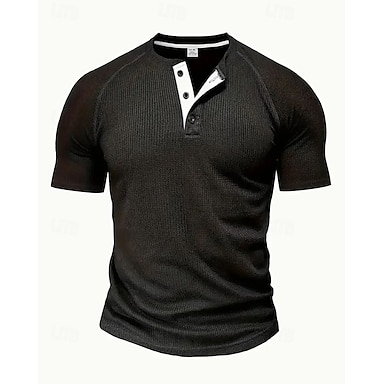 Miesten T-paidat Lyhythihainen paita T-paita Lyhythihainen Henley Kesä Muoti Suunnittelija Perus Loma Katu Bile Musta Tumman harmaa Vaalean harmaa Top T-paita miehille
