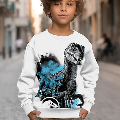 Poikien 3D Dinosaurus College Pullover Pitkähihainen 3D-tulostus Syksy Talvi Muoti Katutyyli Tyylikäs Lapset 3-12 vuotta ulko- Kausaliteetti Päivittäin Normaali