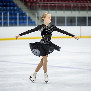 Taitoluistelupuku Naisten Luistimet Hameet Musta Tilkkutäkki Avoin selkä Elastinen Kouluts Kilpailu Luisteluasu Klassinen Kristalli / Strassi Pitkähihainen Luistelu Taitoluistelu