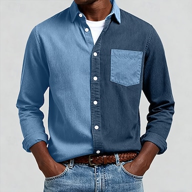 Miesten Paita Rento paita Vakosamettipaita Button Up paita Sininen Keltainen Rubiini Laivaston sininen Apila Pitkähihainen Sänkyjen avaus Kausaliteetti ulko- Väripaletti Vaatetus Vintage Muoti Smart
